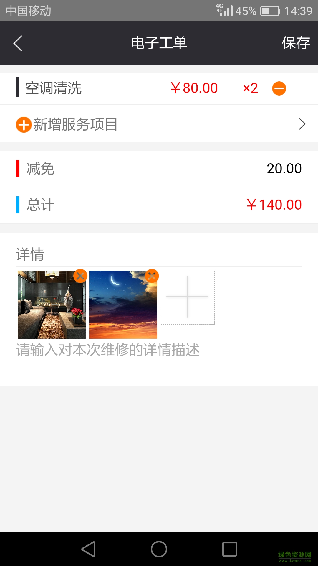 5. 电子工单,帮助快速生成服务项目和费用,支持参考价格选择;