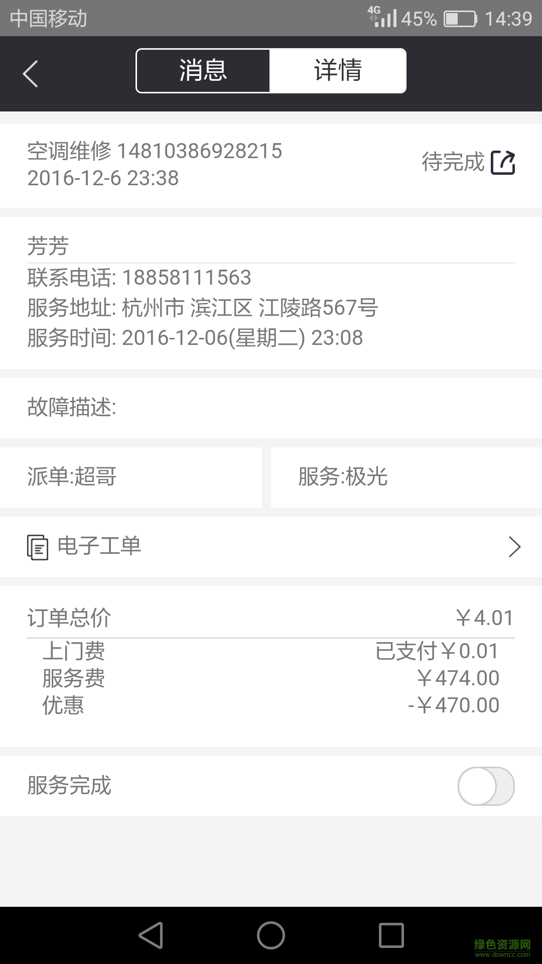 3. 基于订单的聊天,方便技师更好的与用户和客服沟通;