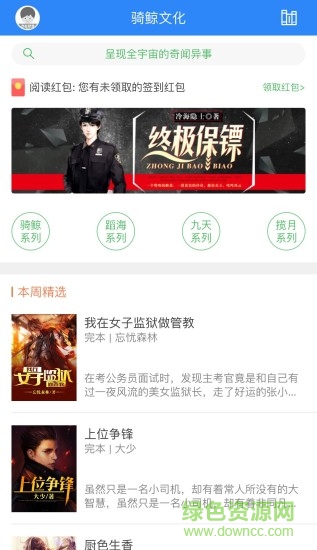 骑鲸文化app是一款原创小说阅读平台,这里汇聚了众多人气作家,提供各种类型小说资源,定期更新免费追书,个人书架详细显示,登录账号后可同步阅读记录,欢迎来绿色资源网下载!