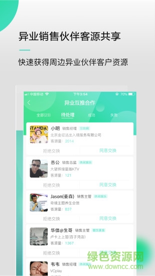 你的新增客户资源掌握在你周边不同行业的销售伙伴手中。在这里,你们可以公平的、自由的、合理的相互交换客户资源。