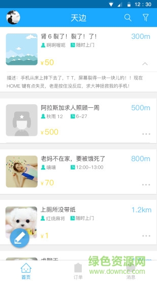 天边app是上门服务软件,用户在生活中需要任何服务,在天边平台上都可以进行发布,洗衣做饭,接送孩子,上门维修等,给用户家庭生活带来了极大的方便,掌握自己的时间,有需要的用户欢迎来绿色资源网下载!