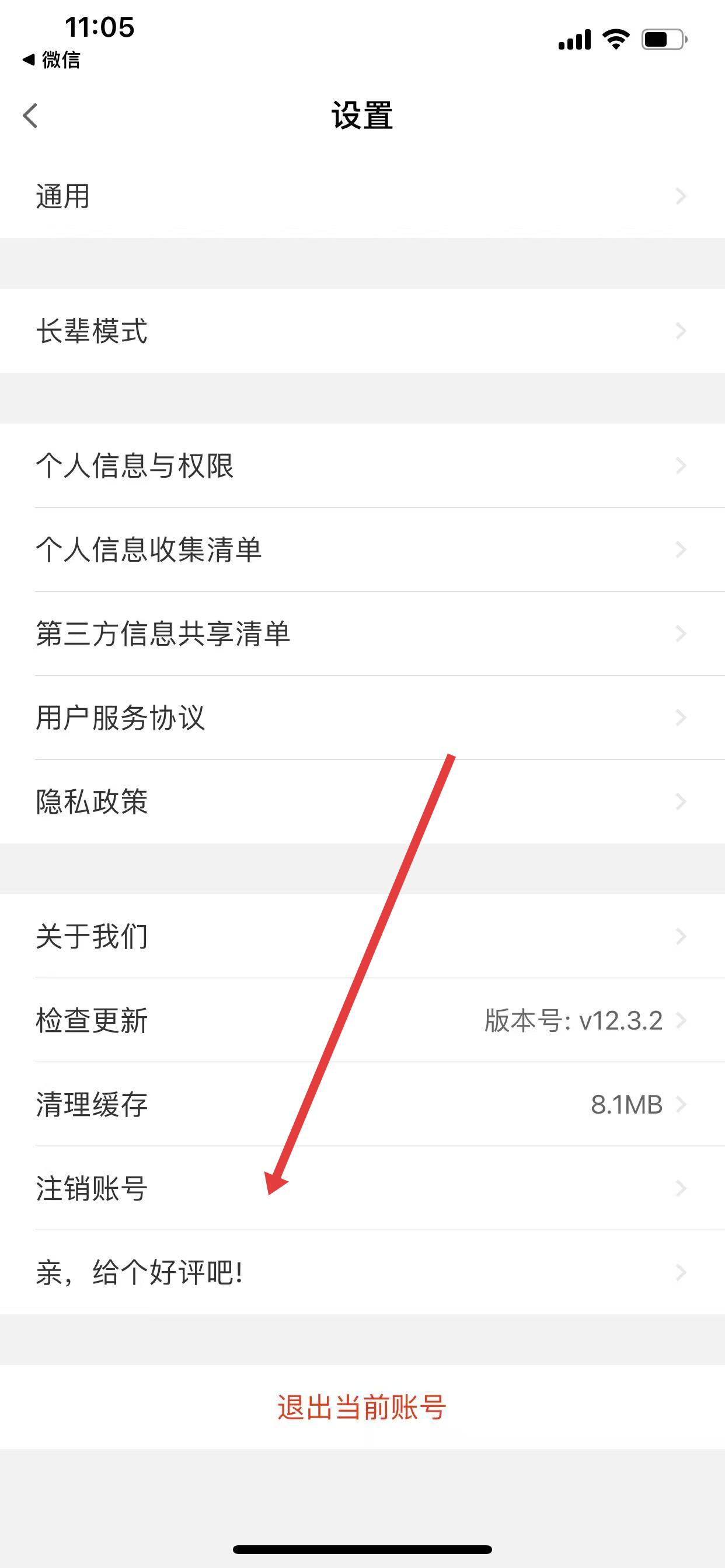 3、进入设置页面后,下滑找到并点击注销账号选项。