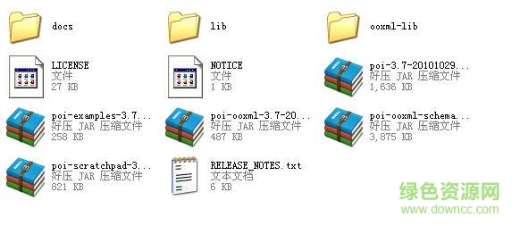 目前POI的最新发布版本是3.10_FINAL.该版本保护的jar包有: