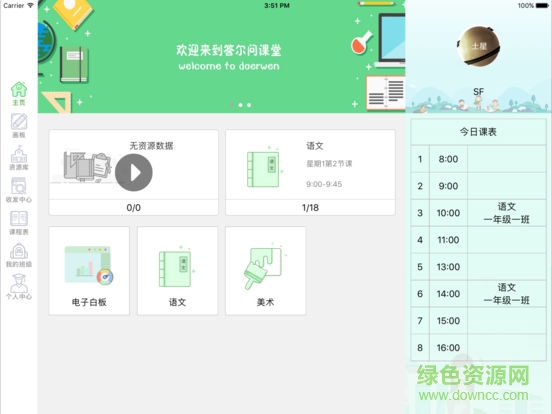 答尔问教育是一款辅助教师上课,提高上课效率的教育工具类App。用户可以选择两种角色进入App,学生和教师!教师角色有主页,画板,资源库,收发中心,课程表,班级管理,个人中心等功能;学生角色有主页,画板,资源库,收发中心,课程表,个人中心等功能。教师角色功能更为强大,能够管理班级,发送资源给学生,学生收到资源后可自动下载,下载完成后可被打开!