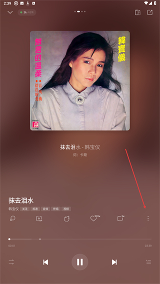1、在酷狗的推荐/歌单列表中,点击目标歌曲,进入该歌曲的播放详情页面。
