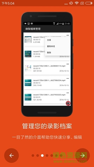 通过内建管理视窗,统一管理您录制的影片(重新命名、删除、分享)