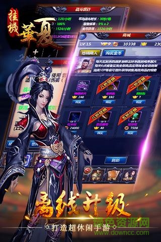《挂机华夏》是一款以东方神话为背景的放置类手机游戏,的离线挂机系统,可以让玩家边上班边升级,完全解放玩家的私人时间,打怪升级、获取金币装备每天24小时自动完成,追求游戏休闲娱乐的本质。