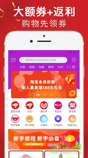 省钱购物查券app软件中拥有丰富的购物优惠券+返利是广大用户购物省钱法宝软件商品比正常购物省很多。