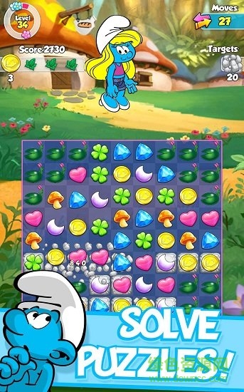 蓝精灵消除手游是非常好玩的消除类手游,游戏的画面清新,让玩家一看就喜欢,传统的游戏玩法,将相同的进行移动消除,游戏的关卡非常的丰富,并且游戏还增加了别的趣味性,喜欢的玩家快到绿色资源网下载体验吧!