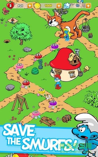 - 使用强大的Smurfy助推器特色你最喜欢的人物微风通过各级