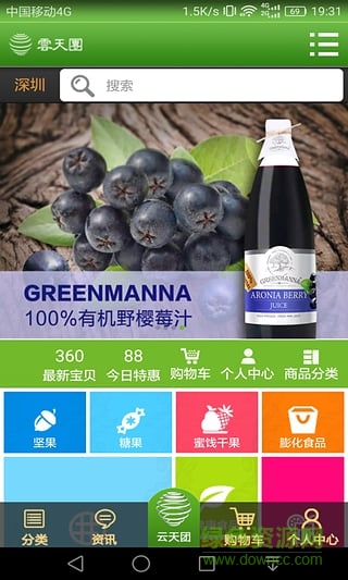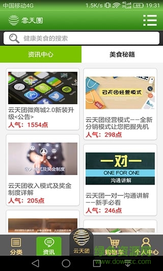 页面设计扁平化,购物流程简单。整个APP分为“云天团”、“分类”、“资讯”、“购物车、”个人中心“五大主界面。目前涵盖几十种品类上千款精品美食,实实在在为吃货们提供优质美食和服务。