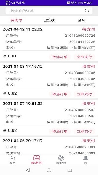 -- 随时随地,帮助你进行寄件收件,获取信息十分方便,操作简单
