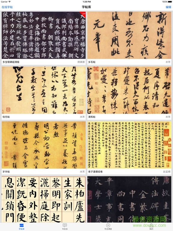 书法碑帖大全是一款非常好用的碑帖学习和练习软件,支持在电脑上查看详细的字帖,各名家碑帖应有尽有,查找方便,还有详细的教学视频,支持和其他小伙伴进行讨论交流,欢迎大家到绿色资源网下载使用!