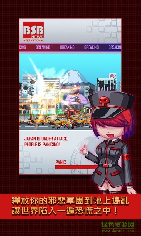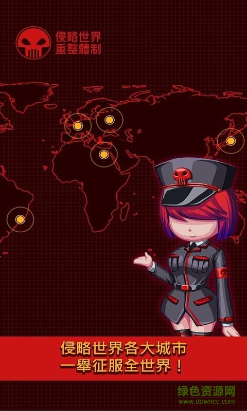 世界侵略者(World Inavder)是一款竖板的模拟经营游戏,在游戏中玩家需要打造自己的兵团来侵略 人类,你可以通过创建地下采矿场和抓人类俘虏来增加资源,然后利用资源创建军事基地,购买武器 装备,增加你的兵力,当你的兵力超过你所要侵犯的国家的防御兵力时,你就可以国家进行就侵略, 同时需要注意的是侵略可以引发人类恐慌,只要恐慌条达到100%,这个国家就属于你啦!