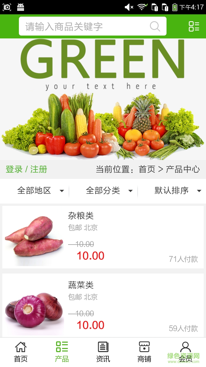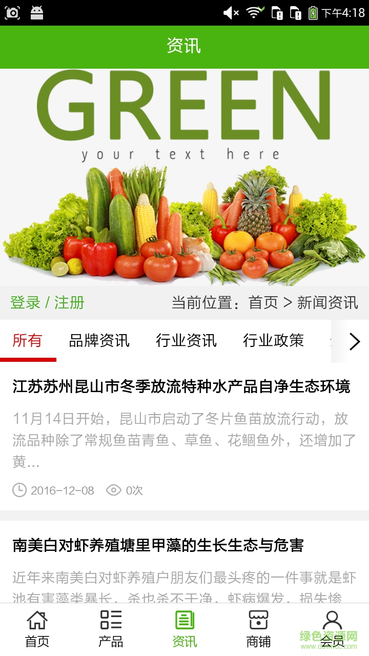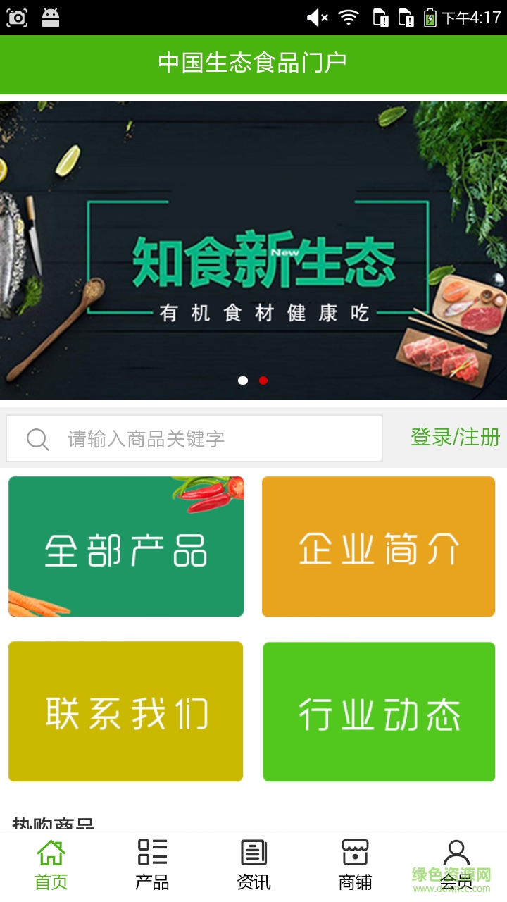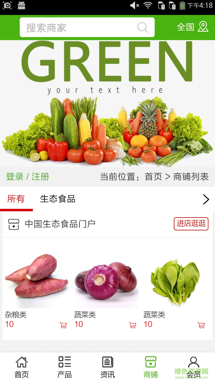 1、生态食品门户app实现了手机版特有的会员注册登录、广告位、招商开店等功能。