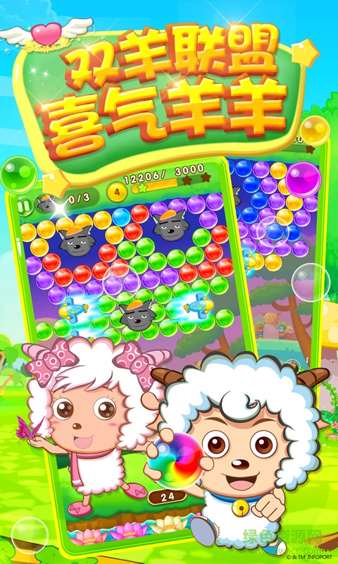 《喜羊羊泡泡大战》是由CMGE中国手游携手掌游世界合作发行的泡泡龙手机游戏,作为国内唯一由奥飞动漫正版授权的"喜羊羊品牌"系列休闲手游大作,《喜羊羊泡泡大战》以经典泡泡龙玩法为基础,加上《喜羊羊与灰太狼》动画元素,让玩家在呆萌有趣的游戏风格中,体验不一样的草原世界,畅享轻松一刻!