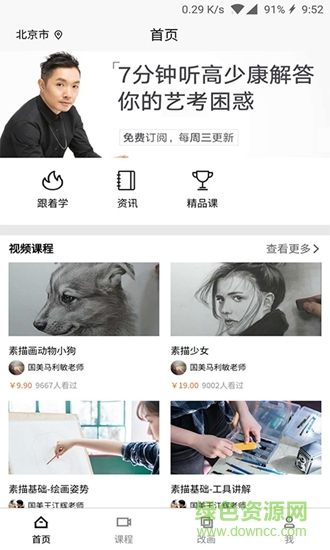 白泽有跟我学模块,可以让学生根据图片一帧一帧跟着学。咨询模块,可以快速查找各大院校的咨询,便于报考。精品课和系列课,可以更好的针对自己学习。改画模块可以让学生老师互动,找出你的不足。作业模块,可以线上学习交作业。