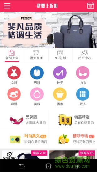 我要上折扣app是优惠购物平台,商品多多,也有精彩优惠相送,实在是剁手党必备神器,再也不用剁手啦!不仅能买到很多合适的东西,而且还可以享受优惠折扣,价格可爱到不行,快来绿色资源网下载抢购吧!