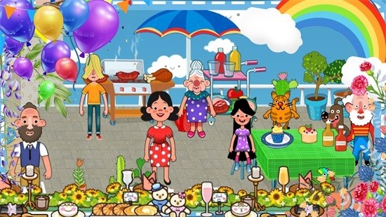 欢迎来到樱花我的小镇假期!在这里,有许多房间可探索。你可以扮演不同的角色,感受与众不同的新鲜体验,一切皆有可能!你可以在屋内与你看到的每个对象进行互动。在樱花我的小镇假期,孩子们可以随意玩耍,乘坐电梯进入不同的房间。看电视、弹吉他、在室外游泳、制作美食、在屋顶的露台聚餐。简单易操作,益智有趣,3岁及以上儿童可以轻松上手玩耍,可以培养孩子们的想象力和动手能力。
