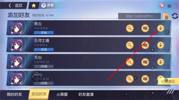 2、在好友页面切换到添加好友标签,查看推荐的玩家列表。