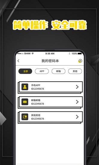 解决记不住密码的苦,随时都能进行密码的记录以及查看,还可以设置解锁密码等