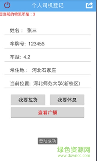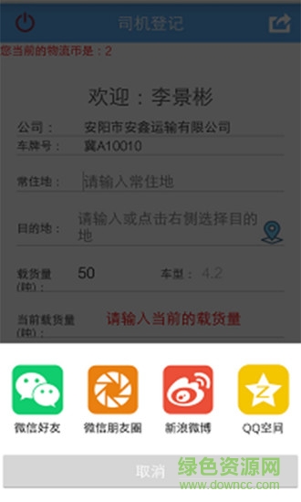 1.分享:个人与在职司机都可进行分享功能,主要是分享app的下载方式。分享成功会增加物流币,用于以后的奖励。