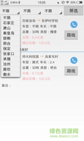2.个人司机找货:个人司机使用手机号注册后,可以选择拉货或者休息,选择拉货后,附近的公司会根据距离联系,也可以自行查找货源,并可以进行筛选,选择自己合适的货源信息联系。
