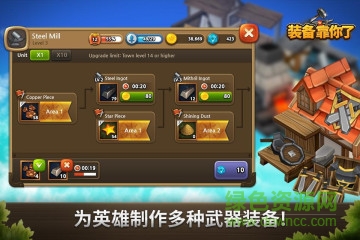 2、为英雄制作越来越多的武器装备,让村庄得到发展,推进世界的和平。