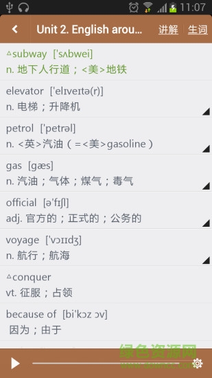 3.生词本功能。绿色资源网小编告诉你可以将每个单元的生疏单词加入到生词本内,学习更有针对性。