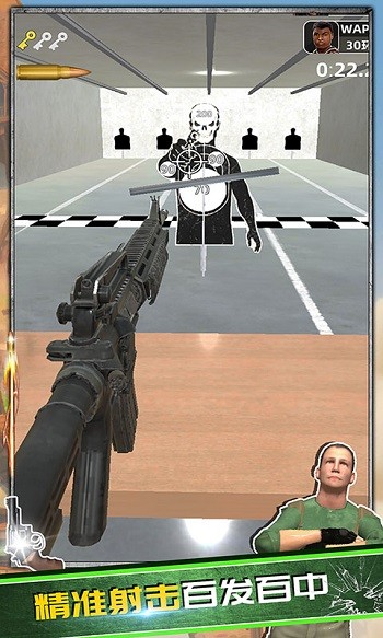 - 经过不断的训练可以提升自己的射击能力,快速瞄准敌人将其击败;