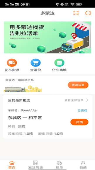 多蒙达货主手机版能够为货主提供不错的物流承托服务,让你寻找到自己所需要的车主进行货运服务,拥有物流订单的详情查询,更能够通过货源搜索,实现轻松找货的服务!