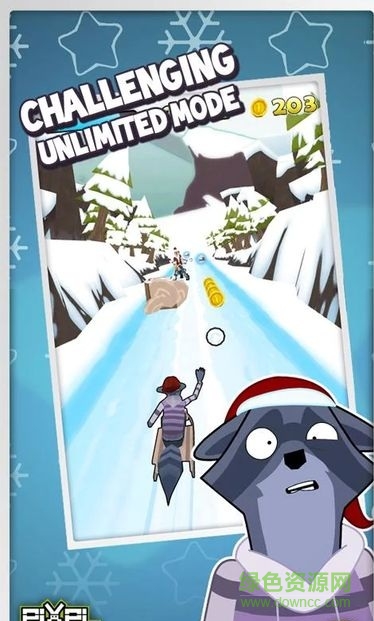 主人公“阿比”是原始森林里的一只浣熊,不过变成了世界上最不幸的动物,所有人都在抓他,包括猎人、警察、自行车甚至大象,玩家要控制它躲避各种障碍,并收集硬币和道具,比如隐身、磁铁、加速等。游戏提供有森林、足球场、城市等不同的场景,采用全3d画面显示,游戏难度甚至比《神庙逃亡》还要大点。玩家可以玩到50个挑战模式关卡和30个故事模式关卡。