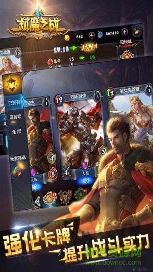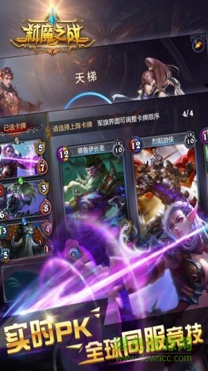 《弑魔之战》是一款全球同服,实时对战的策略竞技类游戏,采用的是西方奇幻冒险游戏题材。游戏当中,玩家可以上阵最多4张卡牌通过连珠进行战斗。 《弑魔之战》的核心理念便是卡牌组合与养成,游戏中有大量富含特色且画面精美的卡牌,这些卡牌通过技能、颜色等方面进行组合,构成能够满足各类型玩家需求的战斗体系,从而使玩家在与机器人或其他玩家的战斗中获得乐趣。