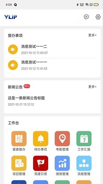 在软件的工作台中,有很多的日常办公功能可以让用户进行选择使用,包括但不限于督查督办、事项待办处理、考勤管理、以及相关的工作汇报等等。