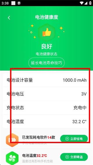 1、让您一手掌握手机耗电情况,科学管理电量;