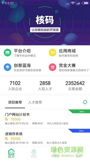 核码app是一款非常专业的软件服务平台,用户在这里可以发布软件开发任务,也可以接取任务,完成任务后可获得佣金报酬,同时还可以和广大程序大神一起交流学习,有需要的用户快来绿色资源网下载试试吧!