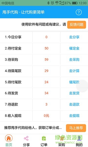 甩手代购app是专为代购用户提供了智能管理软件。可以在线管理订单数据和商品资源。支持代购商品转发分享操作。并且实现了手机收付款功能,需要的用户快来绿色资源网下载吧。