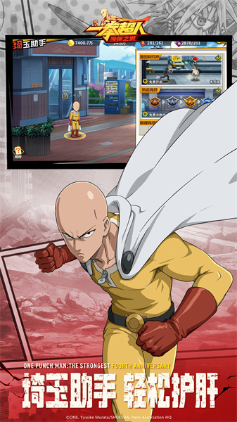 1、超燃激情热血战斗手游,再现琦玉老师一拳超人的惊人魅力,这一次你就是琦玉老师