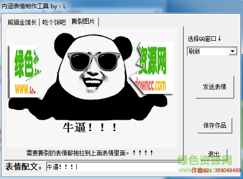 软件介绍 软件标签: 内涵表情制作工具 表情制作 制作工具 内涵表情制作工具是网友自制的一款表情包制作软件,提供多种表情模板,帮助你制作出富有娱乐、整蛊、调侃趣味的表情包,需要的朋友请来绿色资源网下载吧!软件功能内置多张脸可以制作熊猫金馆长表情!表情文字自定义!撕裂表情快速生成(目前只支持一种,后面会考虑加入)吃饼全套表情对话制作!选择qq窗口发送就可以了。使用说明1.在绿色资源网下载并解压文件2.运行exe程序打开软件3.选择模板4.输入文字5.点击保存 软件截图 上一张下一张(1 / 1) 安装详细截图 其他版本下载 标题 大小 更新日期 下载 下载地址 电脑版 内涵表情制作工具 v1.0 绿色版 点击报错 软件无法下载或下载后无法使用,请点击报错,谢谢! 关闭报错反馈 请描述您所遇到的错误,我们将尽快予以修正,谢谢! *必填项,请输入内容 本类最新 菜狗表情包不同颜色gif 最新版 微信狗头旺柴表情包全套 最新小图版 雪容融冰墩墩表情包 高清图片版 吴京表情包原图高清 奶油日常表情包 原神胡桃表情包 免费版 相关文章 大白菜超级u盘启动制作工具教程以及怎么用 用Nero 制作刻录可启动光盘 无需量产 UltraISO制作万能系统安装U盘 手把手教你从注册表扫除苹果工具条 千兆网线的制作方法法与千兆水晶头的制作方法 全新DVD压缩碟制作图文教程 用户评论 热门评论 最新评论 发表评论 查看所有评论(0) 昵称: 请不要评论无意义或脏话,我们所有评论会有人工审核. 字数: 0/500 (您的评论需要经过审核才能显示)