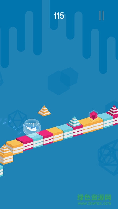 游戏在每个关卡前会有一个要求演示图,示意你如何跳跃操作,比如要求你遇到特定的图形障碍物时,演示图中可能会显示要你跳跃避开,或者要你直接穿过去即可,如果你没有按照要求来前行,游戏就会宣告失败。由于游戏的难度设定较高,对于玩家的反应力有很大的要求,因此在体验过程中容易让人有一种虐心的感觉。