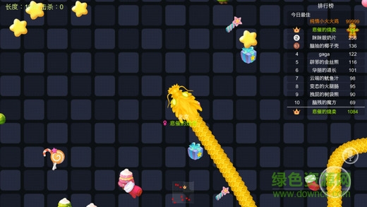 2.长按加速键,用巧妙的走位让蛇身被别人撞上,就可以吃掉他们啦。