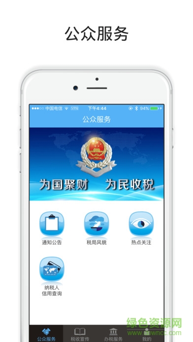 晋城掌上税务ios版是一款专注于手机提供税务服务的软件,用户通过这个软件可以了解最新的税务政策,学习更多的税务知识,也方便用户在这个软件上进行缴纳税务,为晋城地区的市民们提供了很大的方便,欢迎有需要的朋友来绿色资源网下载使用。