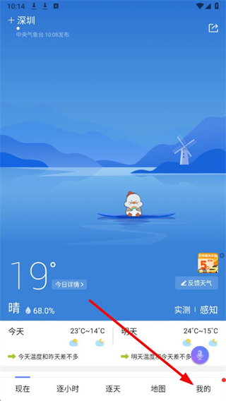 1、在中国天气的应用底部,点击我的,进入个人中心页面。