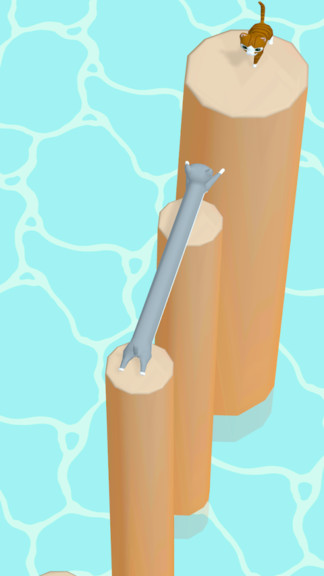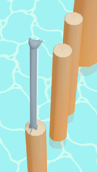 3、游戏中主角是一只长着大长腿的猫咪,你需啊哟操控它利用自己的长腿在木桩上面跨越,灵活的前进并向终点冲刺。
