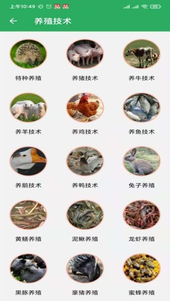 除了能看到村庄相关的资讯动态外,村民们还能在平台上找到各种实用的技术知识,比如进入养殖技术知识页面中浏览其中的技术图标,从众多的图标中选择一项并打开,在里面阅读学习该农产品的养殖方法和技术,学会这些技术后就能在村里养殖致富。