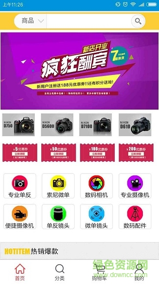 晋东商城app是摄影数码产品购买平台,摄影迷们可以来该平台上尽情选购,国内外摄影品牌齐全,能满足摄影迷们的各种摄影要求,产品信息详尽,可供参考性强,有需要的用户欢迎来绿色资源网下载!