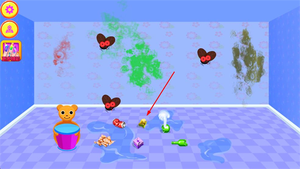 3、在房间内,按照提示操作清理地面垃圾,完成房间的初步清洁整理。