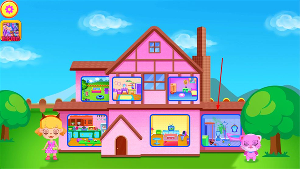 2、在别墅场景页面,选择对应的房间区域,进入该房间的装饰清理环节。