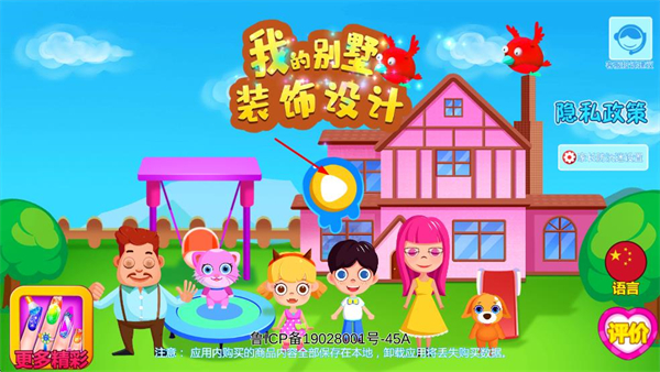 2.装饰漂亮的花园,设计秋千、游泳池、滑梯、蹦床等玩乐设施。