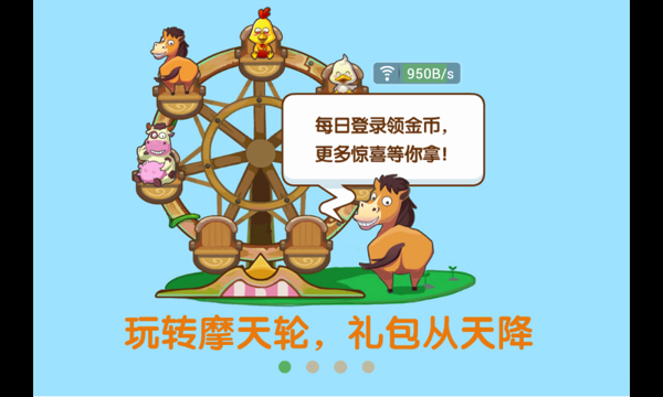 手机独有的摩天轮游戏,登录牧场,转动摩天轮,即有机会免费获得专属高经验动物、万元金币、经验、牧草大礼连续登录7天,中奖几率100%!